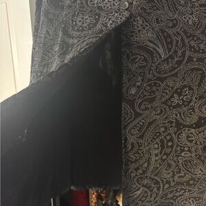 Elegant black skirt with intricate paisley design. Perfect for any occasion. Comfortable and stylish.