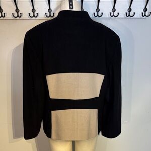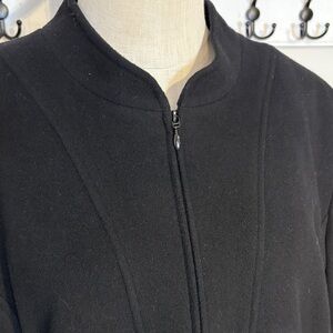 This jacket is made in Canada and is likely a 1990's vintage piece. It is in excellent condition and is made of 65% wool 20% cashmere and 15% polyamide. It is tagged a size 18 but based on measurements it is more like a modern 14. Will fit large to extra large. The lay flat measurements are"
