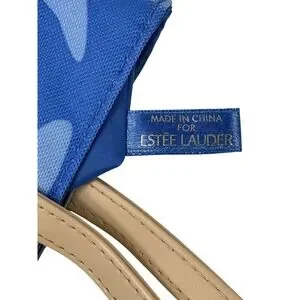 Estee Lauder Blue Floral Makeup Small Tote Bag Fully Lined 2005 7x8x3"