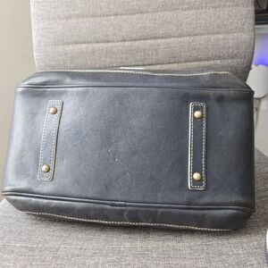 Elevate your style with the Dooney & Bourke Navy Leather Satchel. This elegant bag features a sleek design with gold accents, perfect for any occasion. Crafted with high-quality leather, it offers both durability and sophistication.