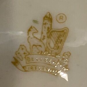 Belleek Harp Woman Shamrock Trinket Dish Fine China Collectible Irish White