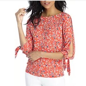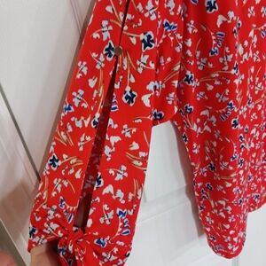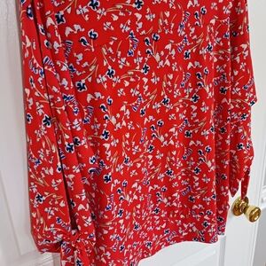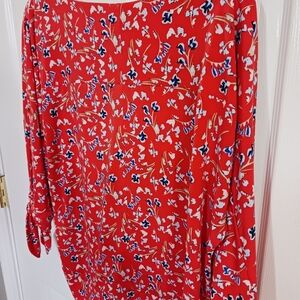 The Limited Red-Orange Floral Moisture-Wicking Stretch 3/4 Sleeve Blouse Size L