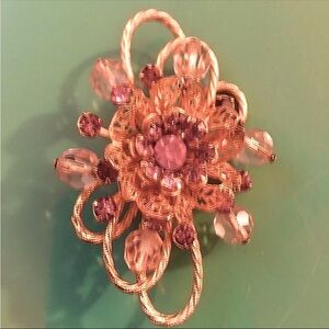 VINTAGE BEADED WITH AMETHYST - COLORED RHINESTONES BROOCH LIKE NEW CONDI…