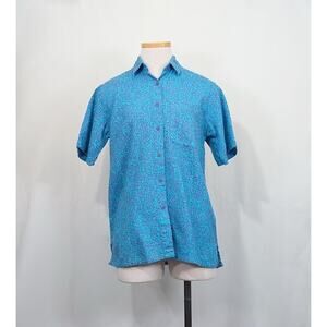 Vintage 90s Blouse Blue Purple Print Top Shirt LL Bean Cool Weave Misses Size S