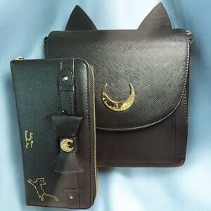 Chic and stylish black convertible bag set featuring cat ear design including wallet. Perfect for adding a playful touch to your outfit. Sailor Moon Fans must have. #Sailormoon #anime #Samanthavega