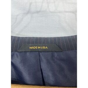 The Haggar Red and Gray Pinch Striped Two Button Blazer in Size 42s is a stylish and versatile garment designed for business occasions. This blazer features a classic flat front, single-breasted jacket with a single vented back and notch lapel. Made with polyester lining, it is designed for dry clean only and offers inner pockets for added functionality. The red and gray striped design adds a touch of sophistication to the blazer, making it a perfect choice for the winter, fall, and spring seasons.