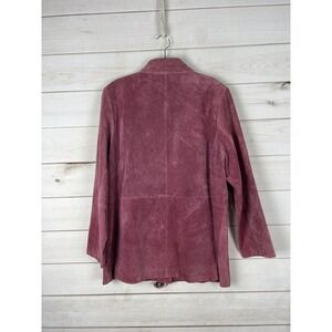 Bernardo Coat Womens Large Pink Suede Leather Button Front Lined Mid Length