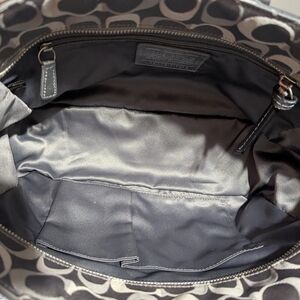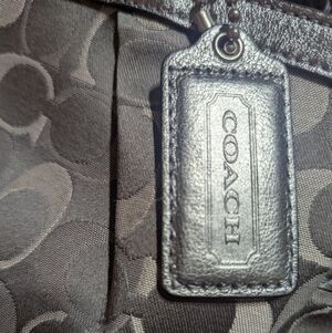 Features: Secure top zip closure, dual shoulder handles, and three exterior pockets for ease of access. Interior has two multi-function slip pockets, and one zippered pocket. Classic Coach Hangtag.