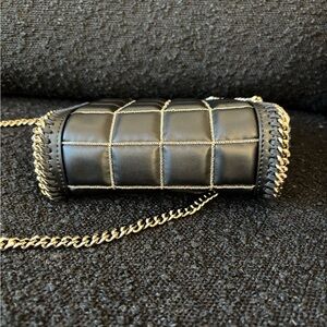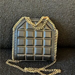 Elevate your style with the Stella McCartney Falabella Tiny Alter Ego Black Quilted Chain Bag. This chic accessory features a luxurious quilted design and elegant chain detailing. Perfect for any occasion. Interior slip pocket. 6.9H x 7.1W x 2.4D. Dust bag included.