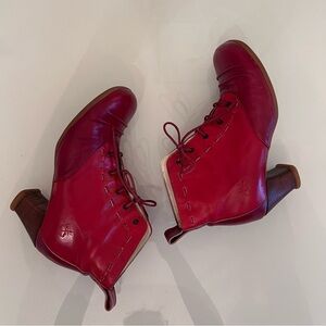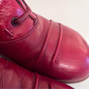 JOHN FLUEVOG Leather Lace-Up Ankle Boots Rounded Toe Red