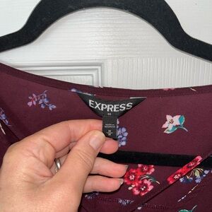 Express Burgundy Lightweight Floral Blouse Medium