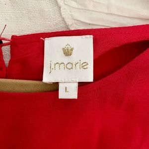 Beautiful red empire waist top with ruffle sleeve and button detail on back. Stitching detail at empire waist line.