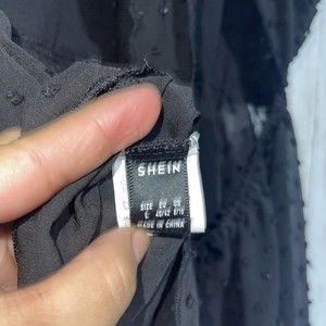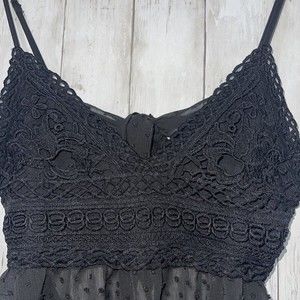 SHEIN Black Lace Trim Swiss Dot Sheer Cami Top Women's Size L Back Tie Cutout