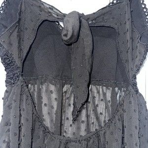 Keywords: sheer, lace, swiss dot, cami, cutout back, tie back, smocked waist, boho, feminine, adjustable straps, evening, date night