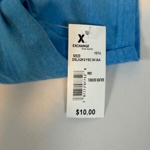 NWT Disney Lilo & Stitch "Surfer Stitch" graphic t-shirt. It is a bright blue t-shirt featuring the character Stitch lying on a red and white striped surfboard.
