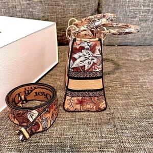 Comes with a reversible/removable embroidered Christian Dior shoulder strap, with logo on one side and pattern on the other, can be carried by hand or worn crossbody.