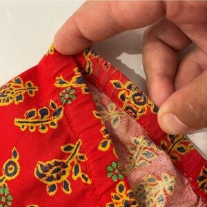 • Adjustable side ties with beaded ends (one bead missing on the right side)