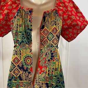 The House of Nu-Mode Vibrant Colourful Vintage Dress with ties beaded ends