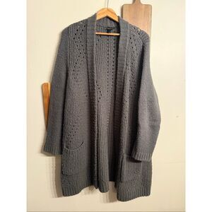 Torrid Gray Long Sleeve Open Front Crochet Knit Pockets Cardigan Sweater Size 0