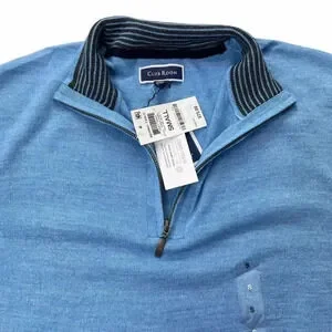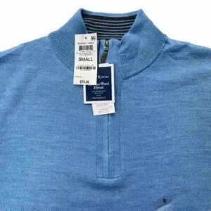 Club Room Blue Merino Wool Blend 1/4 Zip Mens Sweater