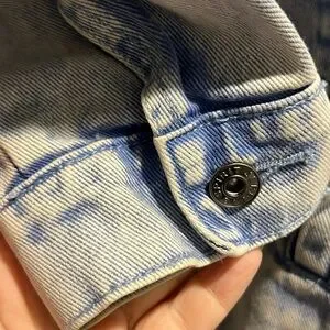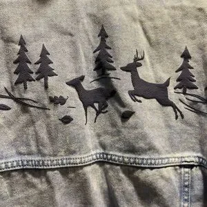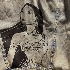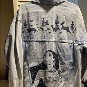 Clean woman’s size large jean jacket with Pocahontas on back two pockets inside and outside