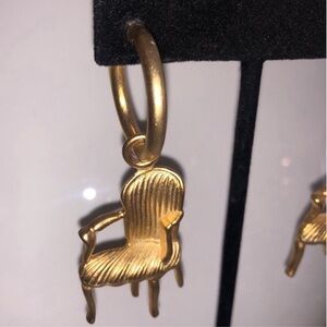 Inspired by Karl Lagerfeld’s chair earrings in the ‘80s, these vintage earrings are perfect for interior designers or anyone who just loves whimsical vintage earrings. Injecting a bit of whimsy or something unexpected in design and fashion has always been at the heart of true runway designers and these vintage earrings are fun. They were very popular in our original NY “wearable art” gallery in the ‘80s and we just unboxed several more pairs. They are highly detailed and pretty. They are a quality matte gold finish and are sold with a matching 1” hoop.