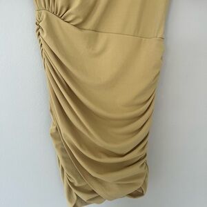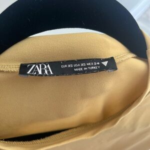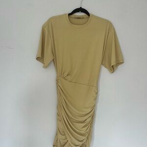 Zara Short Sleeve Yellow Draped Mini Dress Ruched Side Zip Womens Size XS