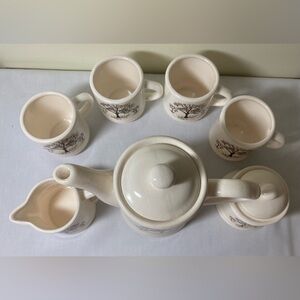 Cream coloured teapot and mug set featuring a beautiful vintage owl in tree design. Perfect for tea and owl lovers.