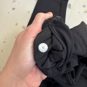 Lululemon high waist leggings, GUC size 6. Full length, 28”. No pulling in bottom gusset. Material is more shiny, repels hair which is nice!