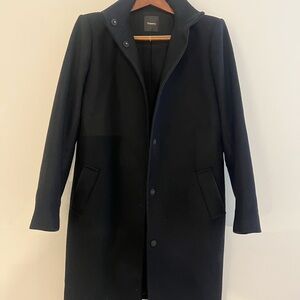 Theory Elegant Black Wool Blend stand collar Coat size Large