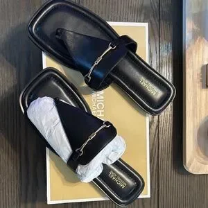 Elegant black leather sandals with gold chain detail. Perfect for versatile styling.