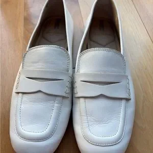 Classic white leather loafer . Only worn once - in great condition. See picture for small scuff on toe of right shoe.
