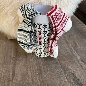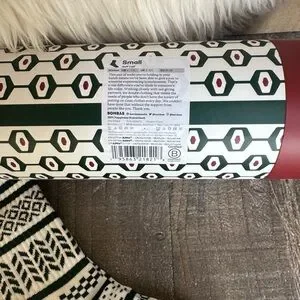 Stylish Bombas socks with a bold geometric design. Features white, red, and hunter green colors. Ideal for casual wear. Canister included.