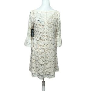 Chic lace dress featuring bell sleeves. Perfect for any occasion.