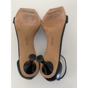 Vince Camuto Size 7.5 Black Leather Square Kitten Heel Sandals Vinkely