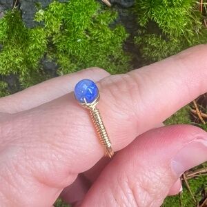 Hand Crafted Elegant Gold Tone Wire Wrapped Blue Agate Stone Ring Size 8