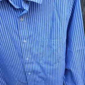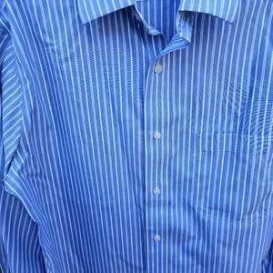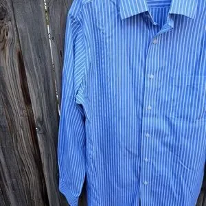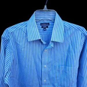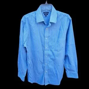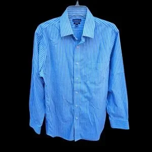 Croft&Barrow Men's Blue and White Striped Dress Shirt Size 15 1/2