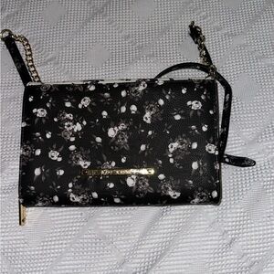 Elegant women's bag featuring a chic floral design in black and white. Perfect for any occasion.