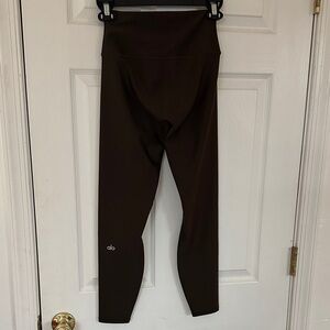 These are a true chocolate brown color. ALO high waisted 7/8 leggings with a little compression and sheen. Worn one time and in great condition.
