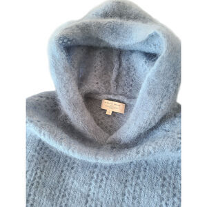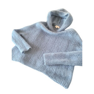 Sezane Theodore Kid Mohair Blend Open Knit Hooded Jumper Powder Blue Size Small