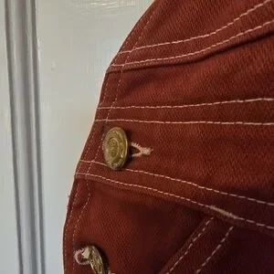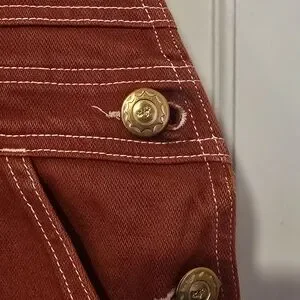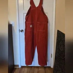 BBP overalls in smoked paprika. condition is pre owned - minor fading from wear but these are built to last and have lots of life left! there are some minor marks on the fabric from the hardware but it's not noticeable when you're wearing them.