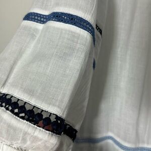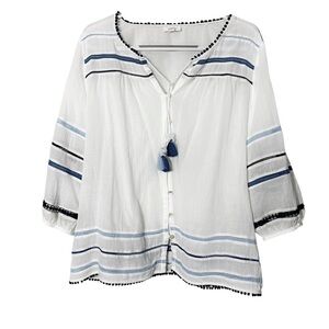 J.Jill White Gauze Shirt Top Pom Pom Tassels