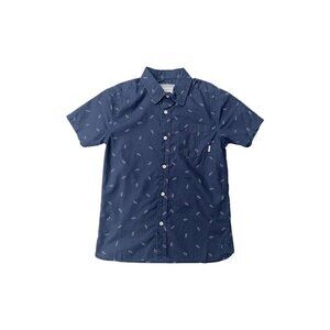 Quiksilver Boys Navy Blue Cotton Short Sleeve Surfboard Printed Button Up Shirt