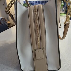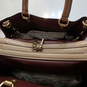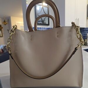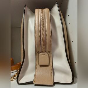 Chic Coach tote in cream leather. Features gold tone hardware and feet on the bottom. The inside is very clean and has a built in kisslock compartment. This bag has been well cared for and stored properly to maintain the shape. I believe the main color is beech wood. The measurements are : width 12 in height 9 3/4 depth 5 3/4. These are approximate. Shoulder strap has a 10 in drop. Note the 1941 hangtag is double sided and 2 different colors. Both matching the outside and innner leather. Note the back side is personalized and cannot be changed unless swapped out with another hang tag. This bag has a fully functional double zip for ease of access. This classic bag remains current and timeless. Non smoking non pet home. Dust bag and key clochette with hangtag included. This bag was produced in 2017 and is sold as is.
