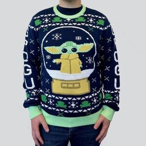 Star Wars: The Mandalorian Grogu Snow Globe Ugly Christmas Holiday Sweater