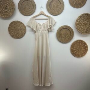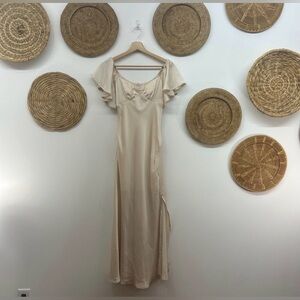 Selfie Leslie Park Avenue Flutter Sleeve Side Split Midi Dress Champagne XS