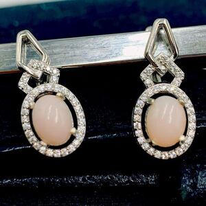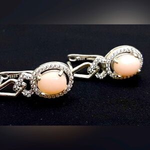 Authentic Pink Opal White Sapphire Drop Earringz