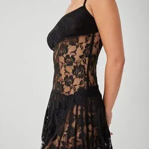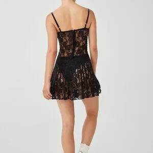 Carlotta is a sheer lace dress that's double lined on the bust for coverage. Carlotta's crafted with a low rise pleated skirt, adjustable back straps, and a sculpting bodice.