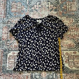 MAEVE BY ANTHROPOLOGIE Navy Polka Dot Women's Top Size: Large (L)