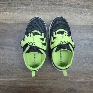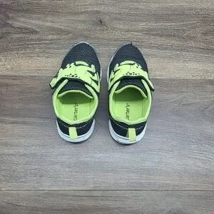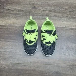 (1) pair of velcro closure, neon green & black T-Rex dinosaur shoes
